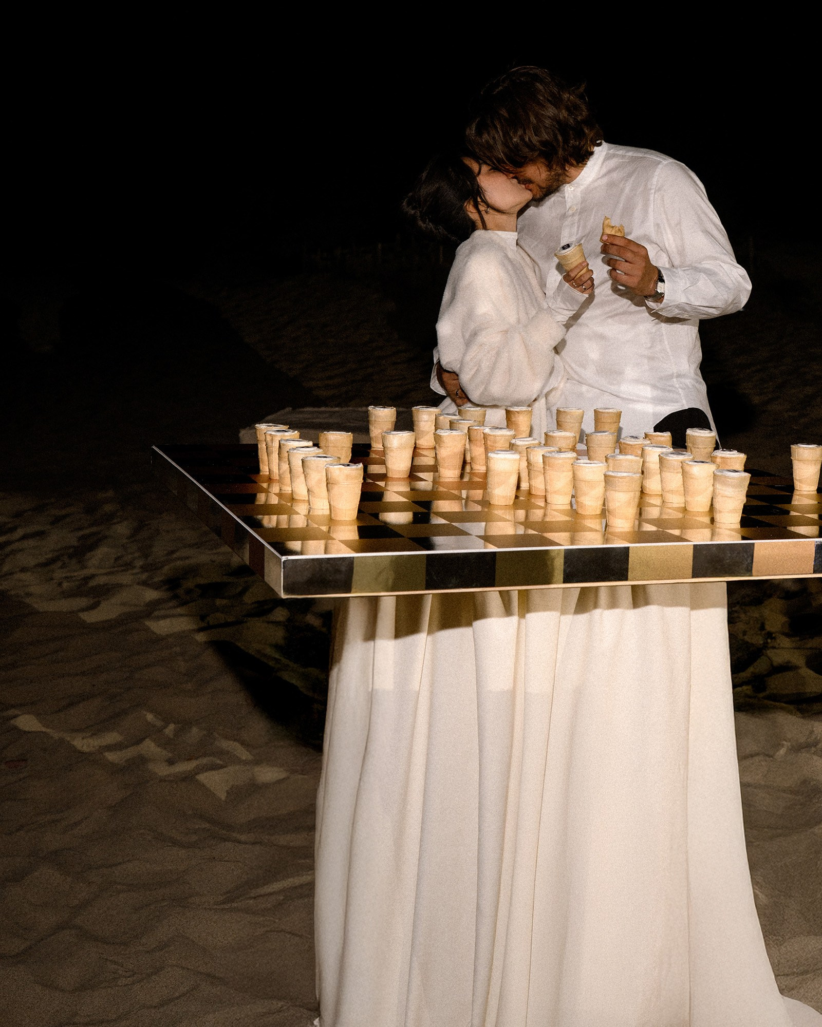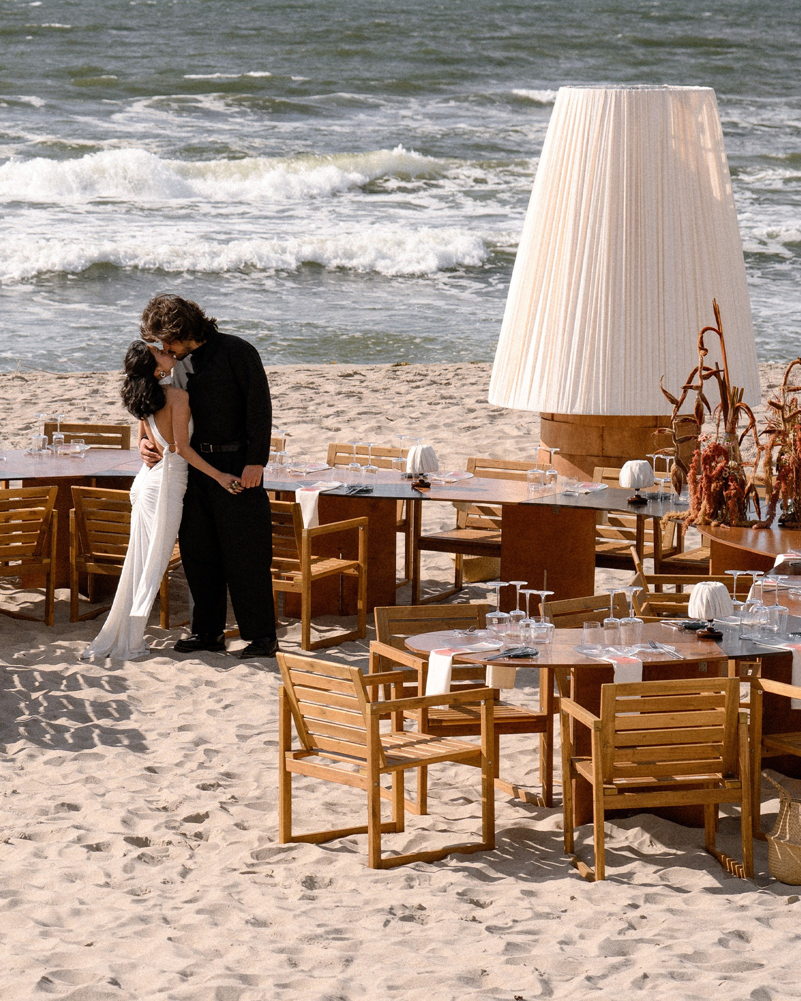 Команда «Серебро» не гнались за трендами, а сделали что-то своё, честное и максимально близкое паре. Зеркальными элементами зоны церемонии отразили закатное солнце, а с помощью стола нестандартной формы создали камерную атмосферу в большом пространстве пляжа. Было рад работать в составе большой команды.Идея, концепция, организация: @serebro_wedding